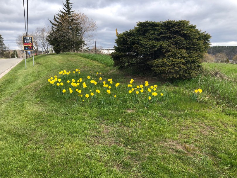 Daffodils planted by volunteers in bloom