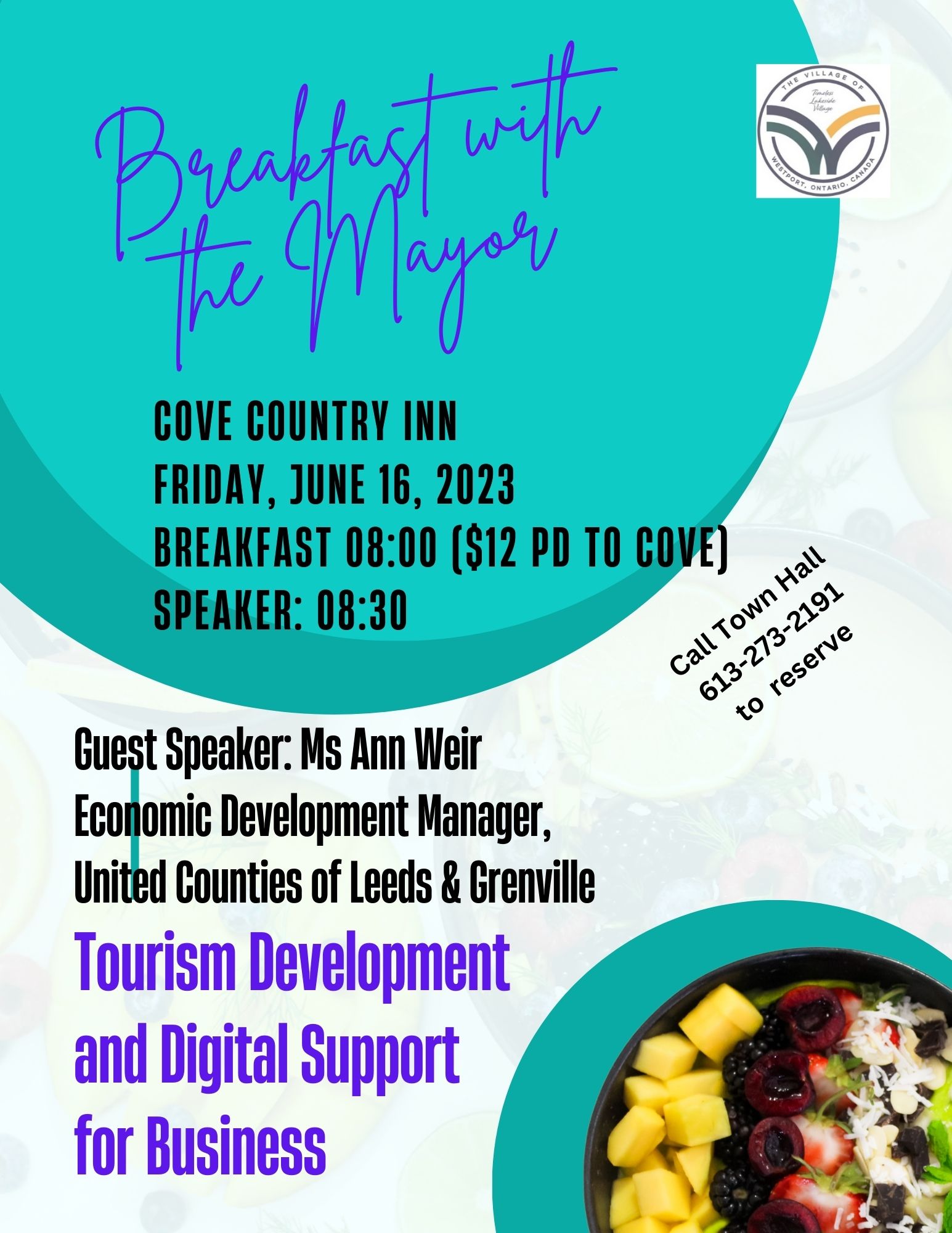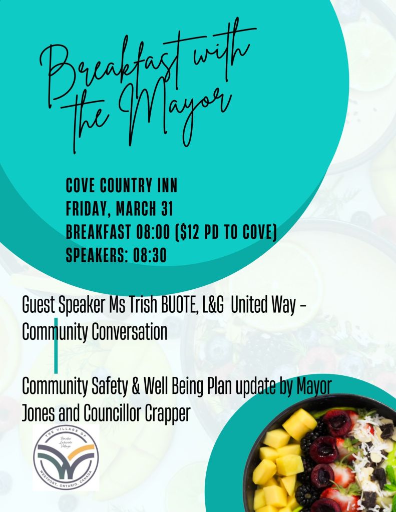 Please join us on Tuesday, December 30, at the Cove for Breakfast with the Mayor. This will be your opportunity to share how the BMO closures impact you. Village staff will record everyone’s comments, and the Mayor will present them to regional BMO staff when they visit the branch in January.