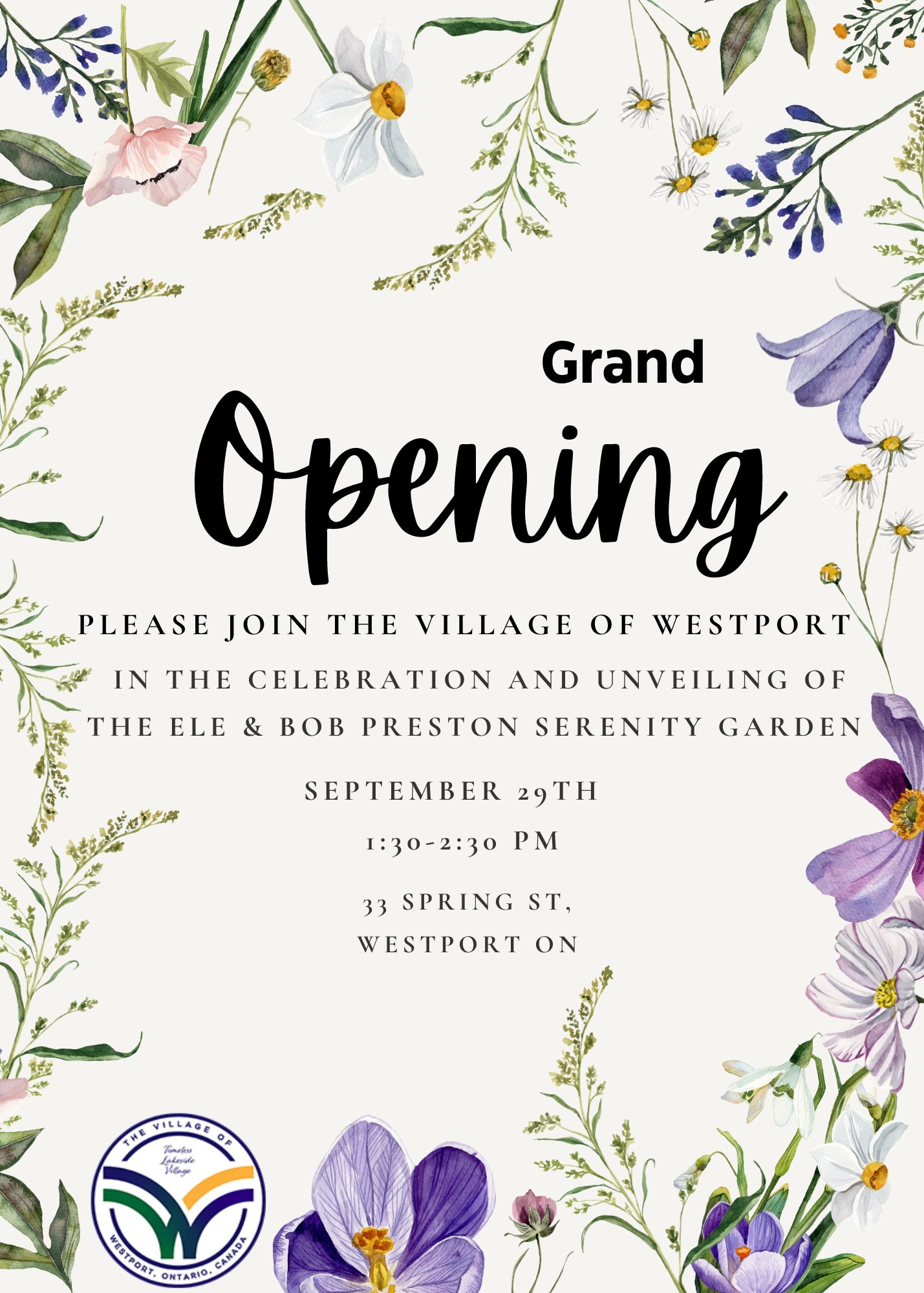 Uncategorized UNVEILING OF THE ELE & BOB PRESTON SERENITY GARDEN – SUNDAY, SEPT 29 @ 1:30 p.m. Lockwood Park (beside Fire Hall) Image September 28, 2024 robinthemayor